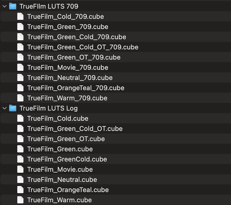 10x LUTS to give your standard/Rec709 a variety of TrueFilm looks.